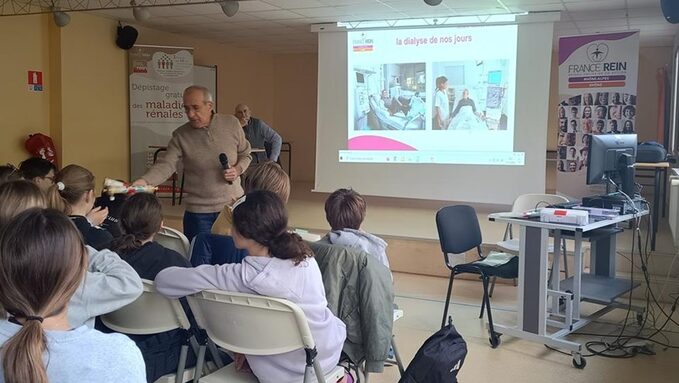Ce mardi 31 mars 2026, les élèves de 5e ont eu l’opportunité d’assister à une présentation de Guy, Marc et Xavier, membres actifs bénévoles de l’association France Rein Rhône, engagée dans la sensibilisation aux maladies rénales.